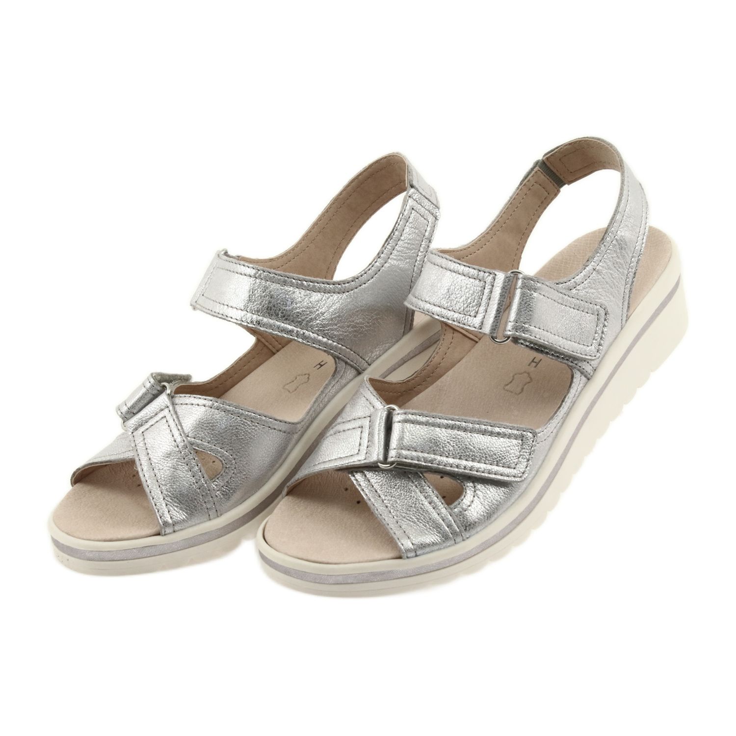 The CAPRICE 28210 silver wedge sandals are the perfect choice for women looking for a combination of elegance and comfort. Made of high-quality natural leather, these shoes impress with their beautiful silver shade, which will add shine to any styling. Thanks to the velcro fastening, putting on and taking off the sandals is quick and easy, which ensures comfort of use.