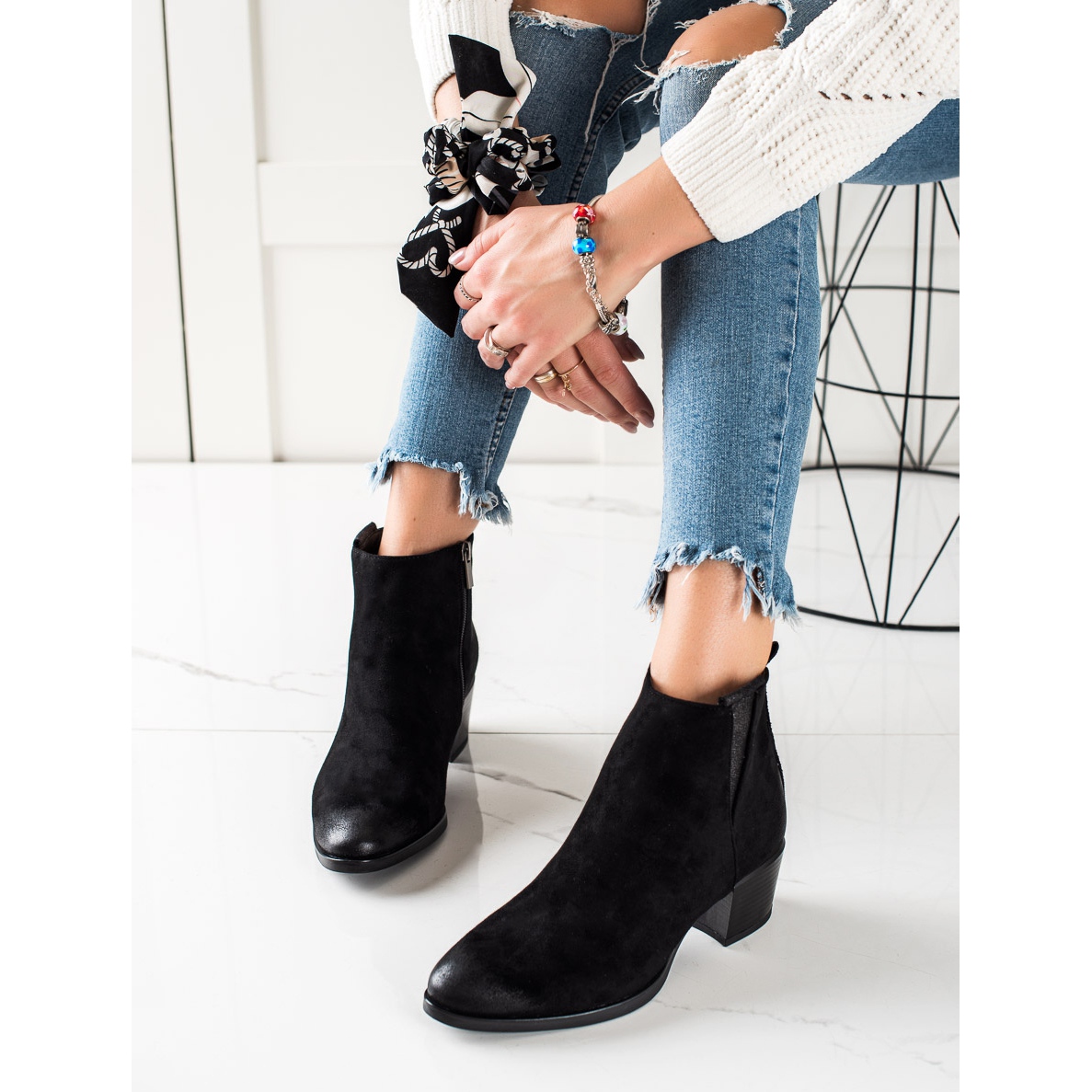Stylish and comfortable W. Potocki ankle boots are the perfect choice for women who value both a fashionable look and comfort. These black, casual ankle boots made of high-quality imitation suede are perfect for everyday stylings as well as more elegant occasions.