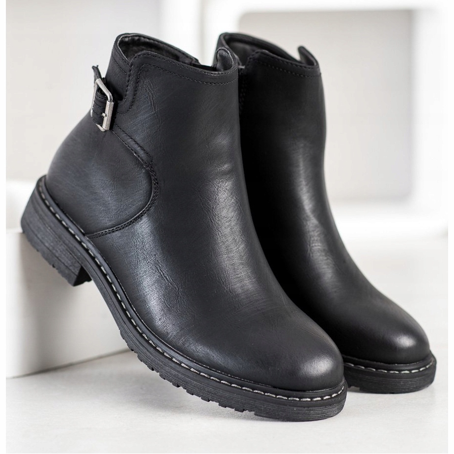 Thanks to the classic black color and subtle decorative buckle, these boots beautifully match various styles - from everyday to more elegant ones. The heel length of 3 cm and the flat heel make them a comfortable choice for everyday.