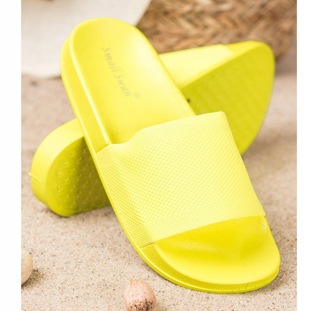 Discover the extraordinary flip-flops from the Small Swan brand, which impress not only with their fashionable design, but also with their comfort of use. This unique model in an intense yellow color is a perfect choice for summer days when you want to feel free and stylish!