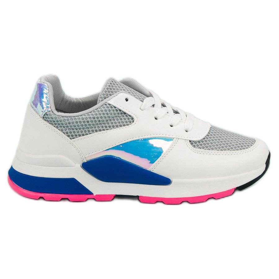 Discover new styling possibilities with Casual Sports Shoes in white with multi-colored accents! These fashionable shoes, made of patent eco-leather, perfectly fit into current trends, and their unique design will definitely catch the eye.