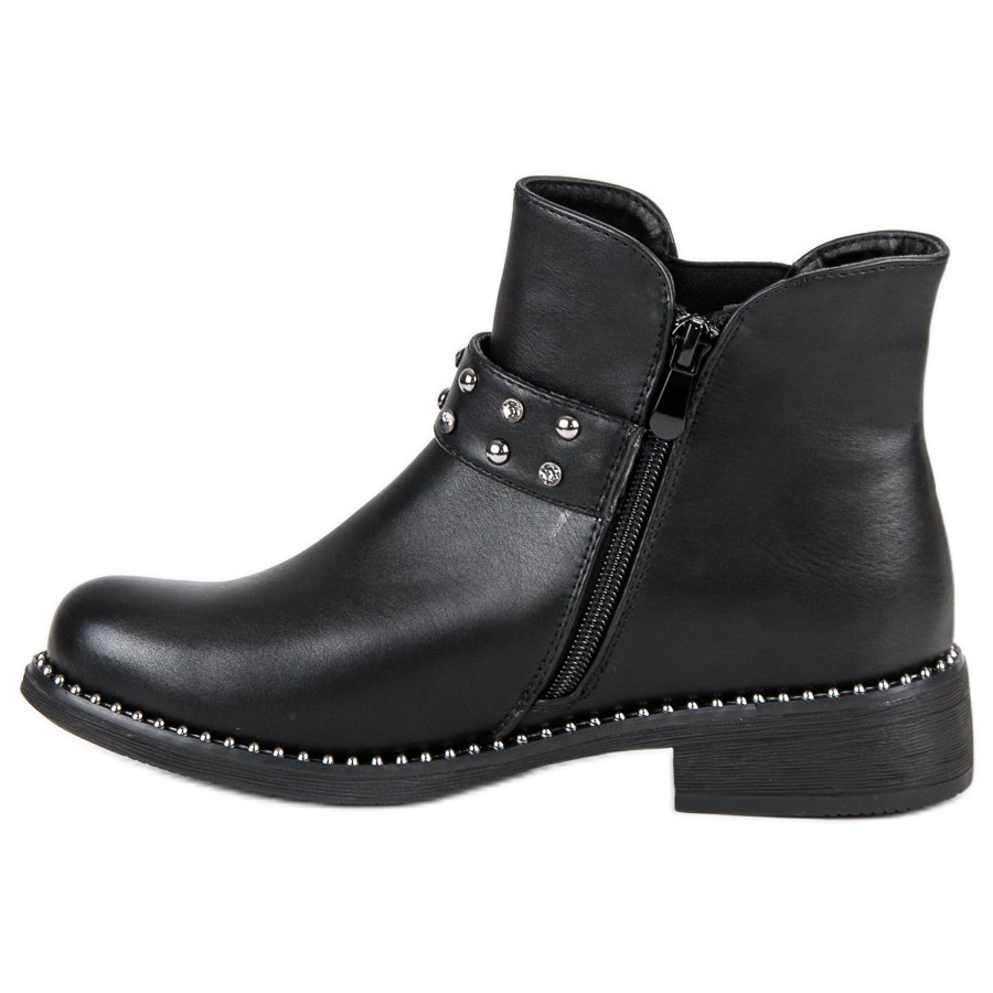 The boots are carefully made of high-quality eco-leather, which looks great in combination with decorative rhinestones and a buckle, adding character to them. The heel is covered and soft, which guarantees comfort of wearing all day long. Their height reaches 11 cm, which makes them perfectly emphasize the legs, and the round toe provides comfort even during longer walks.