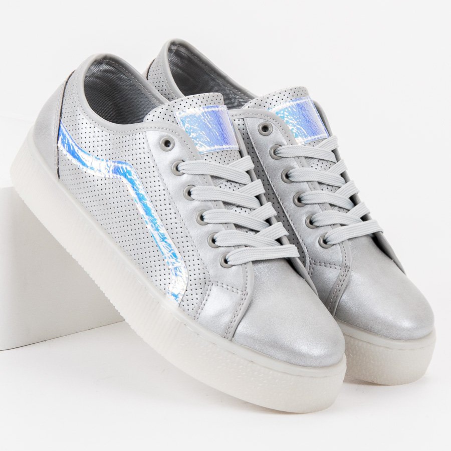 Discover exceptional style and comfort with casual women's shoes from SHELOVET in a shade of gray and silver. These fashionable sports shoes are characterized by an open toe and perforated material that allows feet to breathe freely, making them perfect for warmer days.