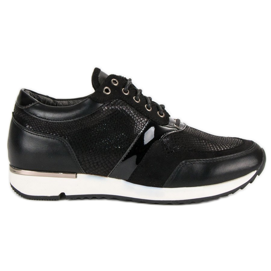 Black casual women's sneakers by Filippo are the perfect solution for women who want to combine style with comfort. These fashionable shoes will perfectly fit into any everyday, urban look, adding freshness and originality. Made of ecological leather in three interesting textures - smooth, patent and snakeskin - they attract attention and stand out from classic models.