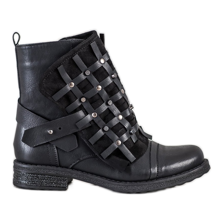 Made of high-quality eco-leather, these workers stand out not only for their modern look, but also for their internal insulation, which provides thermal comfort even on the coldest days. Thanks to the rhinestones placed on the front, the shoes add a rock character to any styling, making them suitable for casual, but also more expressive outfits.