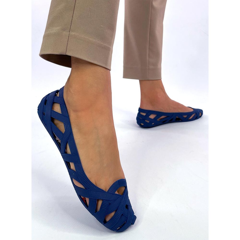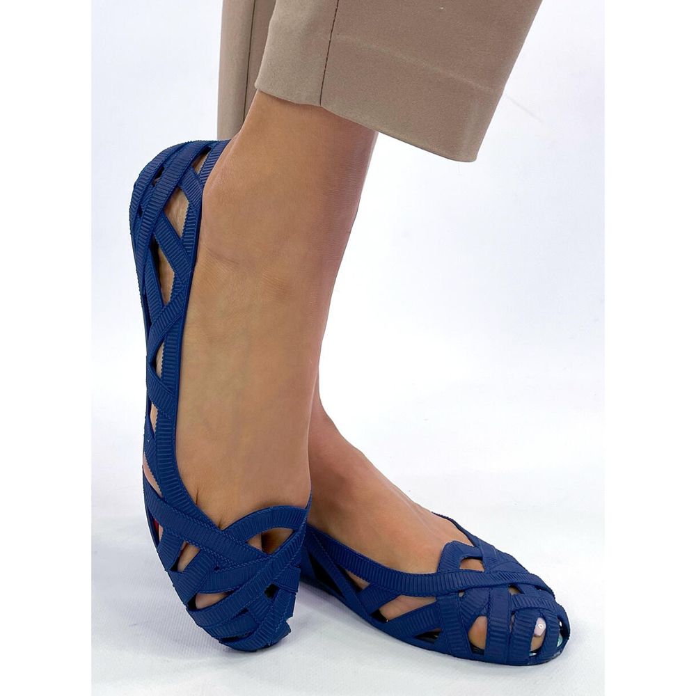Inna marka Chassa Navy openwork meliski ballet flats blue