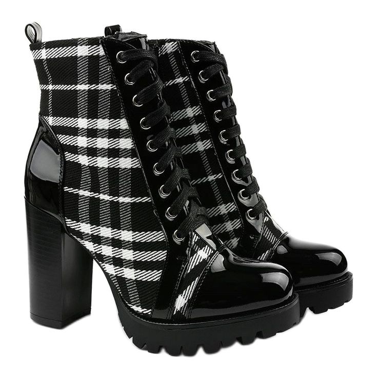 We present elegant Millersto lace-up ankle boots in black, which are the perfect complement to any style. Characterized by a modern design, these ankle boots feature an upper made of black and white checkered fabric, which gives them a unique and fashionable look. Patent leather inserts add class and make them ideal for both everyday and more formal occasions.