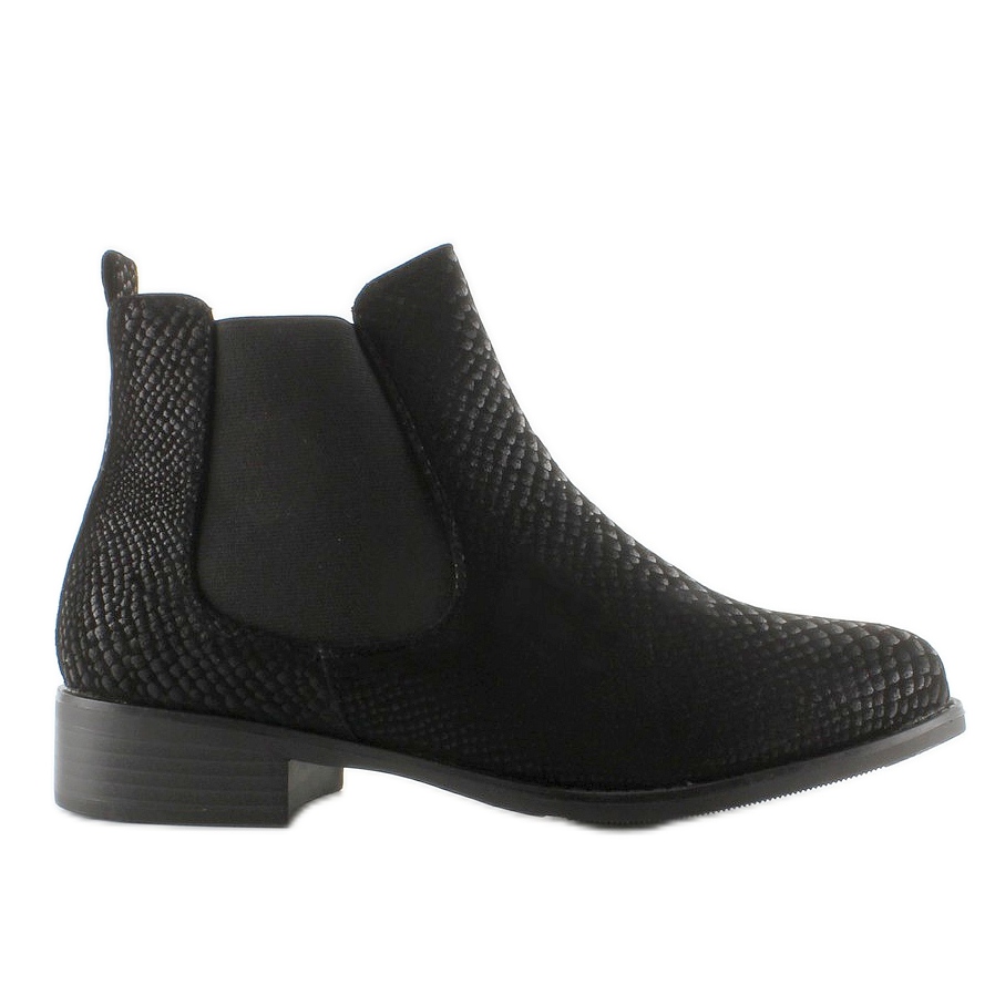 We present elegant Snake Story 1546-90 women's Chelsea boots in black, which perfectly combine style with comfort. Made of high-quality ecological suede, they stand out with a unique texture that attracts attention. The subtle snakeskin motif gives them a unique character, making them an ideal choice for various occasions.