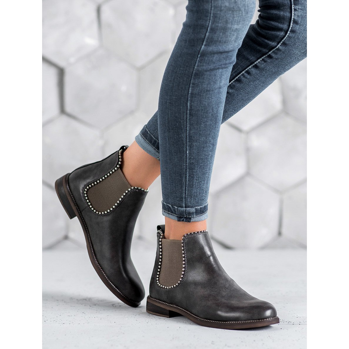 Don't wait! Choose gray SDS ankle boots with rhinestones and enjoy a fashionable look and everyday comfort!