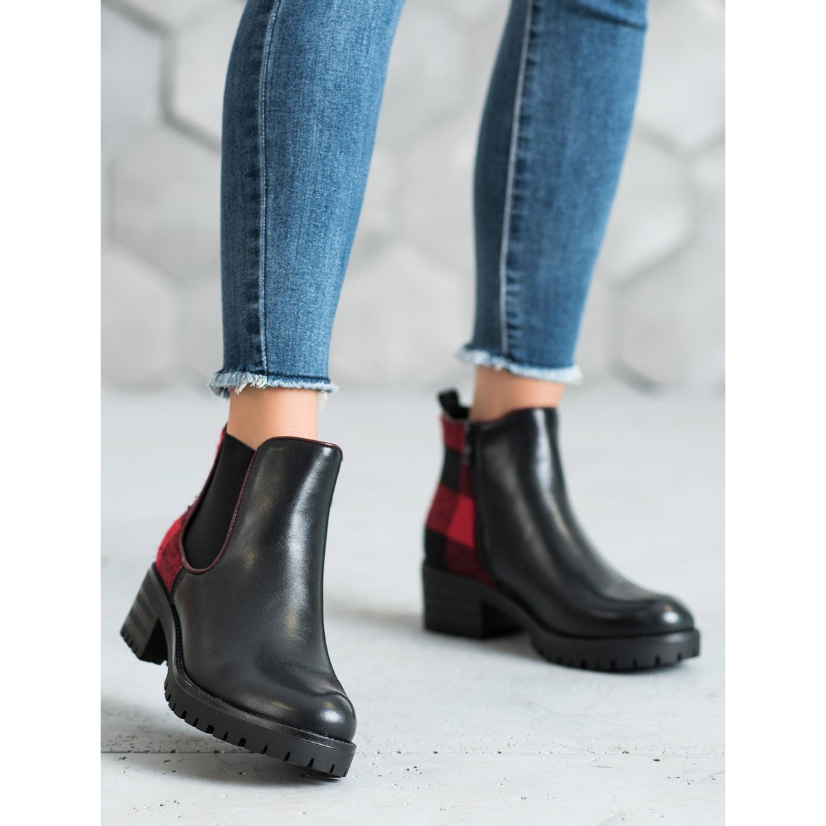 Discover the unique style of autumn and winter with the Seastar Chelsea boots, which perfectly combine elegance with everyday comfort. These women's ankle boots, which reach above the ankle, turn any style into a fashion masterpiece. The black uppers at the front are broken by an original pattern in a red and black check at the back, which not only adds character to them, but also makes them extremely versatile.
