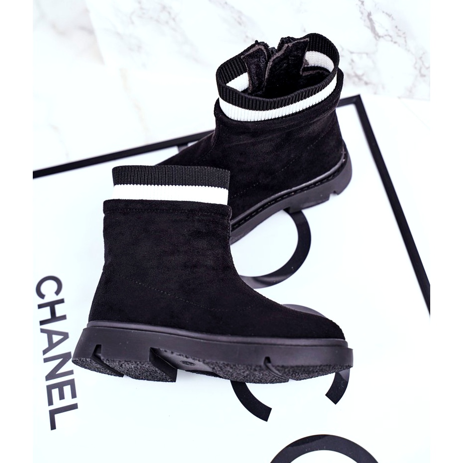 Discover the unique children's ankle boots insulated Chelsea boots from the Apawwa brand, which will perfectly complement any winter style of your little fashionista. These black ankle boots have been designed with comfort and style in mind, and their upper made of eco-leather imitating suede not only looks elegant but also ensures durability.