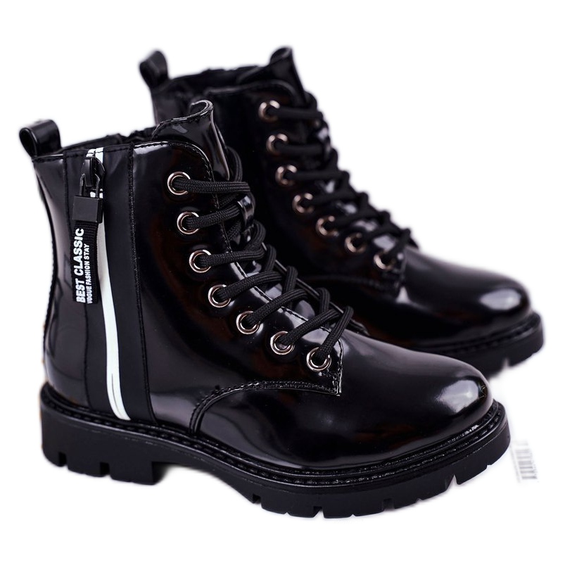 Details: Vinceza Children's Boots Warmed with a Zipper Lacquered Black Falcon
