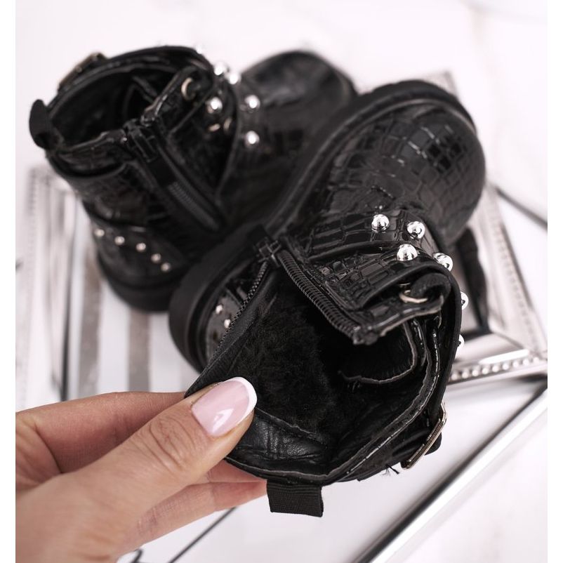 We offer excellent children's boots from the FRROCK brand, which will be an ideal solution for colder days. These fur-lined, patent black boots are a combination of style, comfort and functionality. Made of high-quality ecological leather, they are distinguished by an attractive decoration in the form of croco leather, which adds elegance to them.