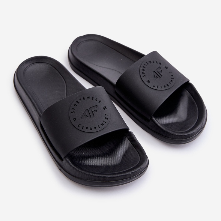 Children's flip flops 4fjmm00fffflif016a-20s in black is a great choice for active boys for warmer days. The 4F brand made sure that each step was comfortable thanks to a slightly profiled interior, which adapts to the foot, providing comfort throughout the day of fun.