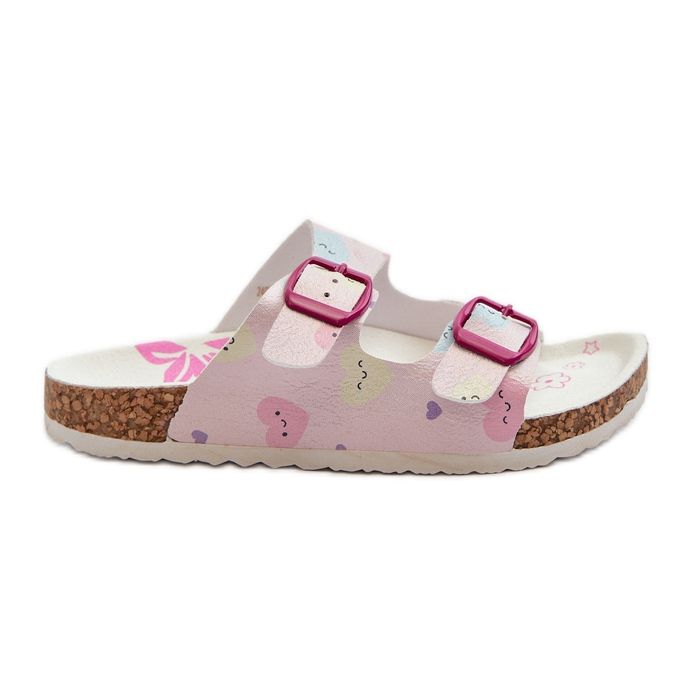 Children's flip flops with pink Abiding heart buckles are the perfect combination of style and functionality. Designed for small explorers, they are an excellent choice for summer days, which are full of games and adventures.