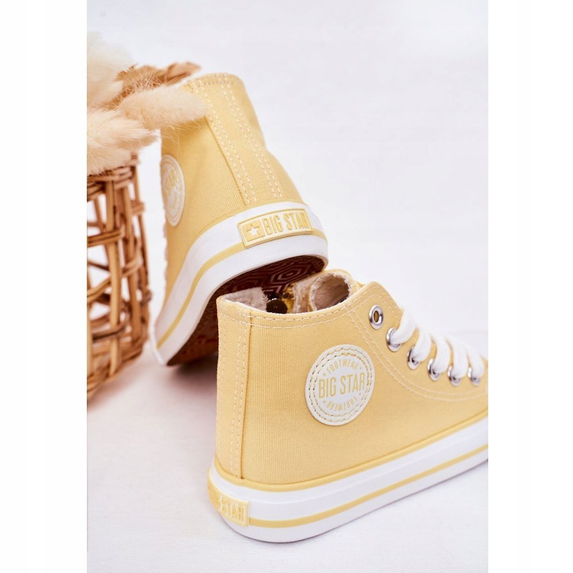 We present the Big Star HH374138 children's high-top sneakers with a zipper in a beautiful yellow color. These classic sneakers from the renowned BIG STAR brand combine style with functionality, making them the perfect choice for active girls.