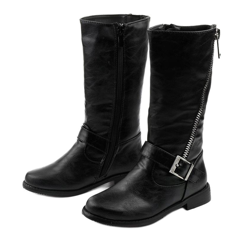 The boots have a high upper that effectively protects the legs from the cold. The inside of the shoes is filled with a soft insert, which guarantees comfort when worn, as well as proper cushioning for small feet. Comfortable zipper fastening makes it easy to put on and take off, and the decorative buckle adds a bit of charm and character.
