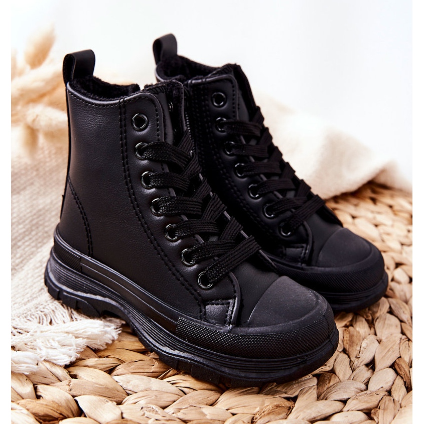 Children's leather insulated FR1 sneakers in black are a great choice for the youngest! Made of high-quality eco-leather, they combine an elegant look with functionality. Their interior is completely insulated with pleasant fur, which makes them ideal for colder days, providing comfort and warmth for little feet.