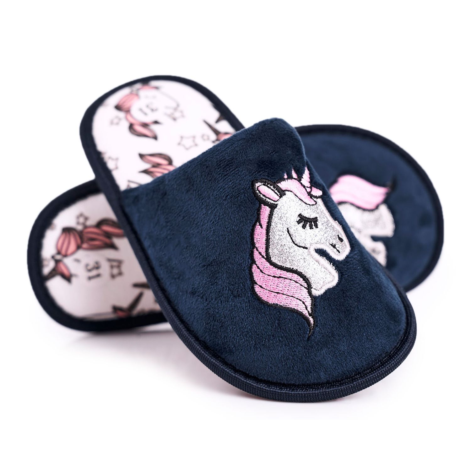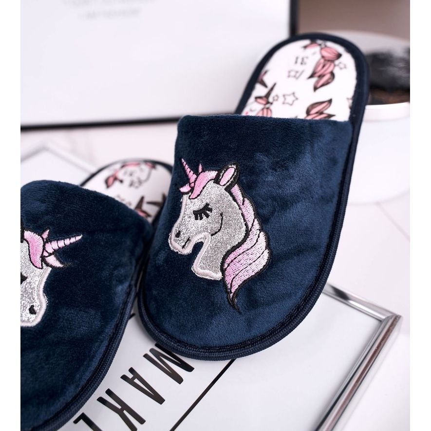Details: Children's Slippers With Unicorn Navy Blue Unicorn