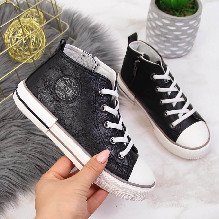 Children's sneakers eco leather black big star ii374003 - comfort and style every day. These high sneakers from the Big Star brand combine a classic look with practical solutions, making them work while playing and on a walk.