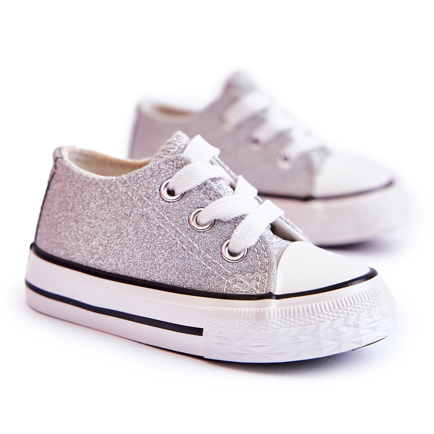 Charming and practical sneakers for girls who combine fashionable appearance with comfort every day. Made of textile material and decorated with a delicate glitter, they will be perfect for the spring -summer season - light, airy and comfortable.