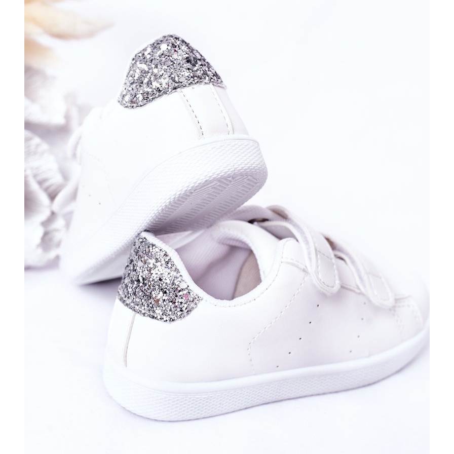 Details: Children's Sneakers With Velcro White and Silver Cute Girl