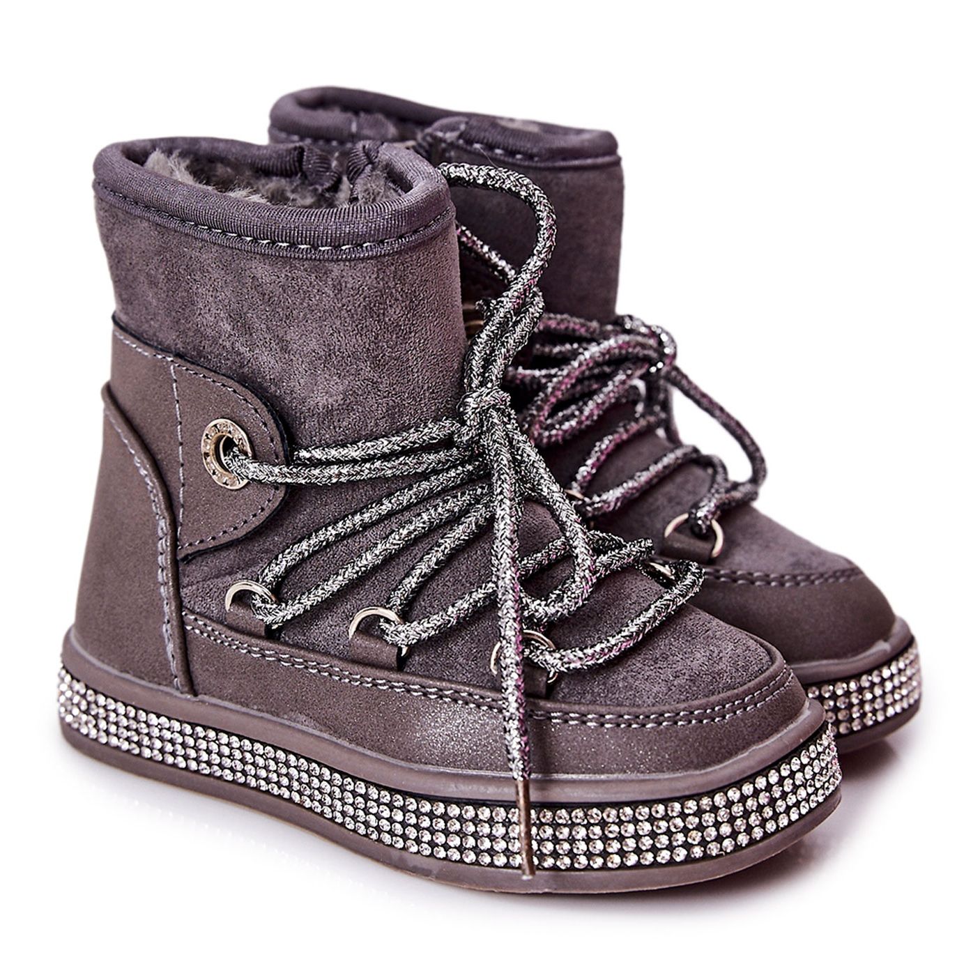 Stylish and functional snow boots ideal for cooler days. The top is made of ecological leather, interior insulated with a soft eco fur, which provides heat and comfort when playing outside. The model is decorated with shiny zircons by the sole and a decorative binding - additionally easier to put on thanks to a practical slider.