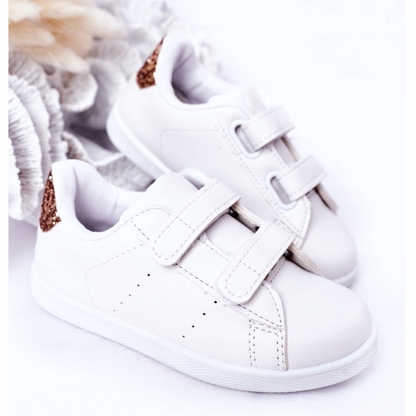 Details: Children's white and golden sneakers