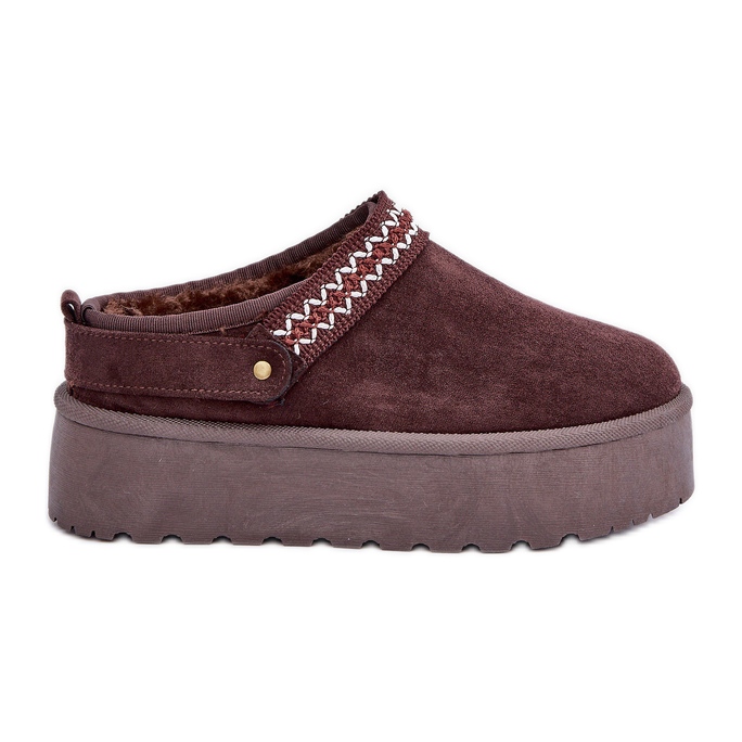 We present snow boots in a chocolate brown shade, which perfectly combine style with functionality. Made of eco suede, these low shoes are ideal for cooler days, offering not only a fashionable look, but also thermal comfort thanks to soft and thick fur inside.