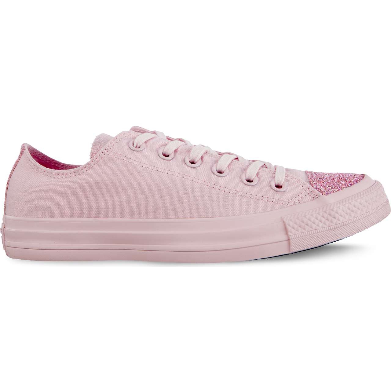 Converse Chuck Taylor All Star C563466 Pink Foam - light sneakers with a fashionable, feminine finish. The upper made of durable fabric in shades of purple and pink has been decorated with glitter on the front and heel, which adds an effective, subtle splendor to urban stylizations. Low, laced shoes with a round toe will work both on a daily basis and for casual, fashionable sets.