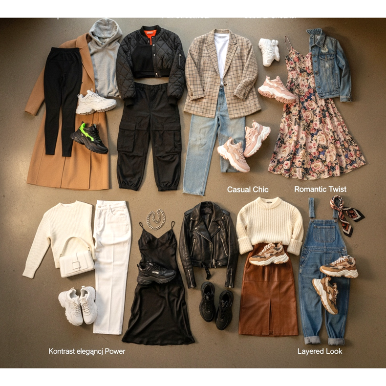 For women with fuller legs chunky sneakers help balance the proportions. The chunky shoe balances the volume of the leg, creating a harmonious effect. However, avoid pants that are too tight - choose looser styles.