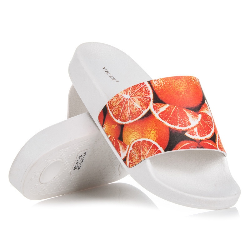 Discover the joy of summer in Vices flip-flops with a citrus motif! These delightful orange flip-flops are the perfect choice for warm days, perfect for a walk, the beach, and the pool. Thanks to the thicker, synthetic sole, they provide stable foot positioning and excellent grip on various surfaces.