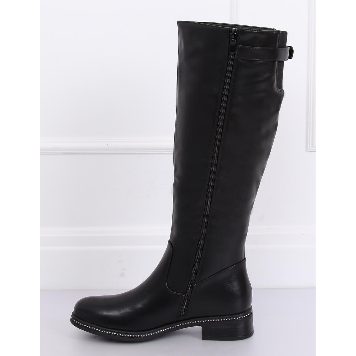 Classic black CH1983 Black boots are the perfect choice for women who value elegance and comfort in everyday style. These black women's boots impress with their timeless design, which perfectly matches various styles. Thanks to spectacular details, such as a decorative zircon application along the sole and a buckle at the top of the upper, these models stand out from the others and add character to every outfit.