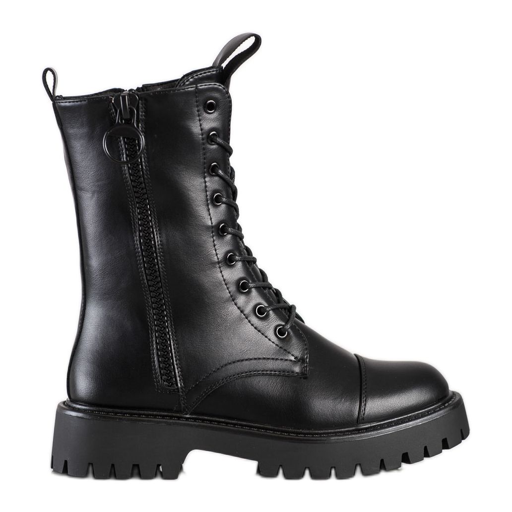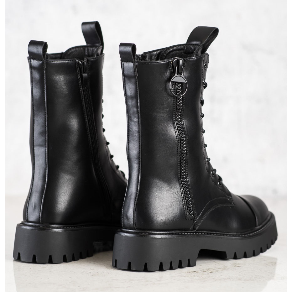 We offer classic black SHELOVET combat boots - the perfect choice for women who value comfort and stylish finish. Made of high-quality ecological leather, these shoes combine fashionable design with functionality, making them a great addition to any casual styling.