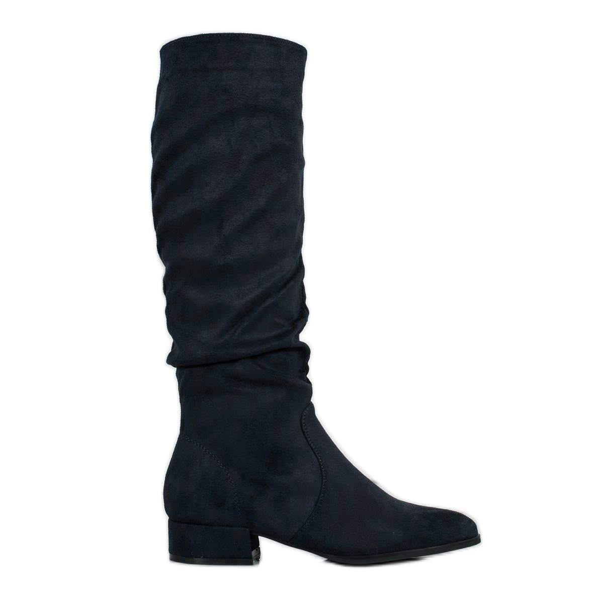 Super Mode Classic Black Boots are the perfect choice for women who value a combination of classic and modern style. Made of eco-leather with a suede finish, these boots impress with their elegant look and comfort of wearing. The ruffled uppers reaching to the knees in a universal black color make them suitable for many different styles - from casual to slightly more elegant.