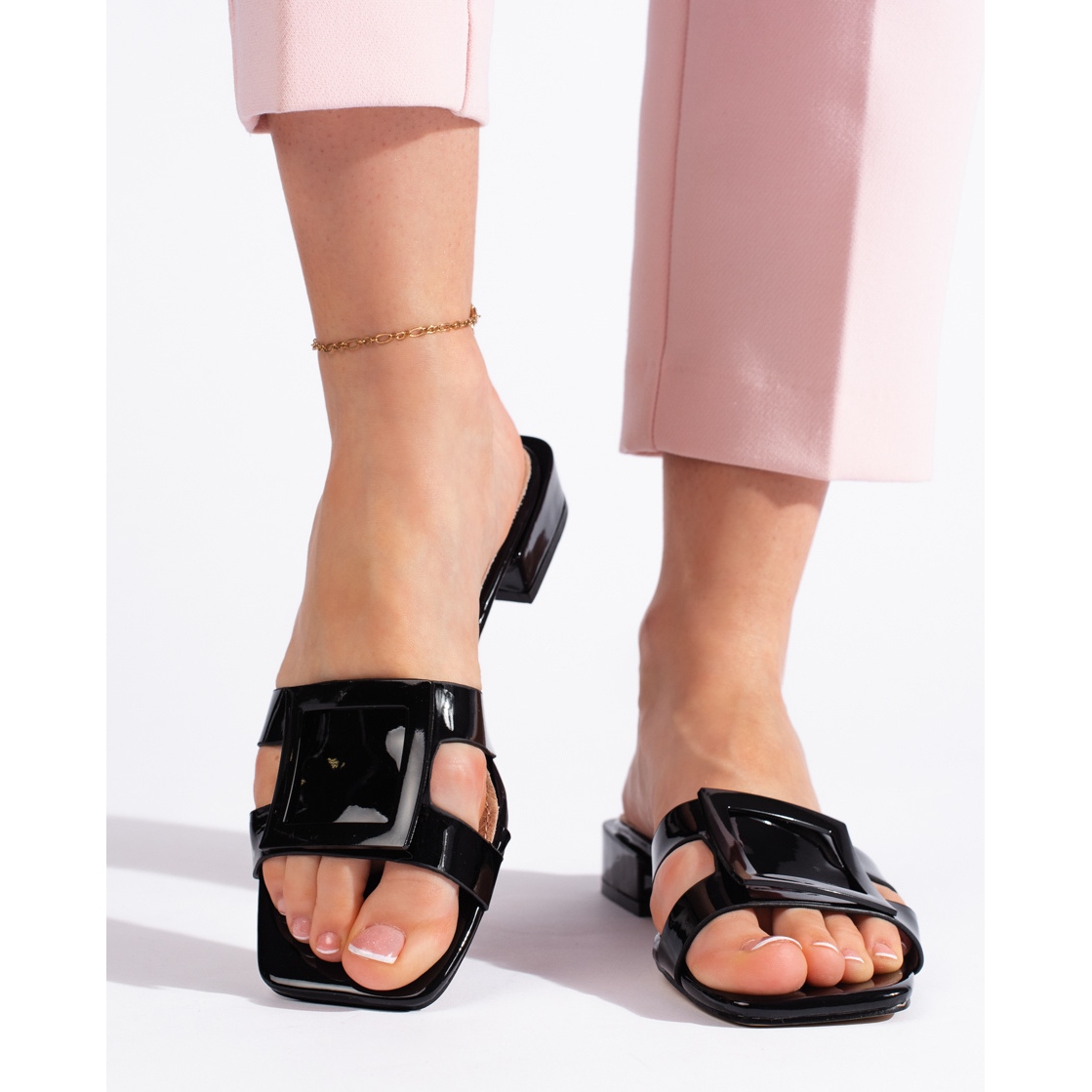 We present classic black elegant women's slippers, which are a perfect combination of style and comfort. Produced by a reputable brand, these flip flops perfectly fit into the categories of casual shoes every day, and their classic design makes them a perfect complement to every female wardrobe.