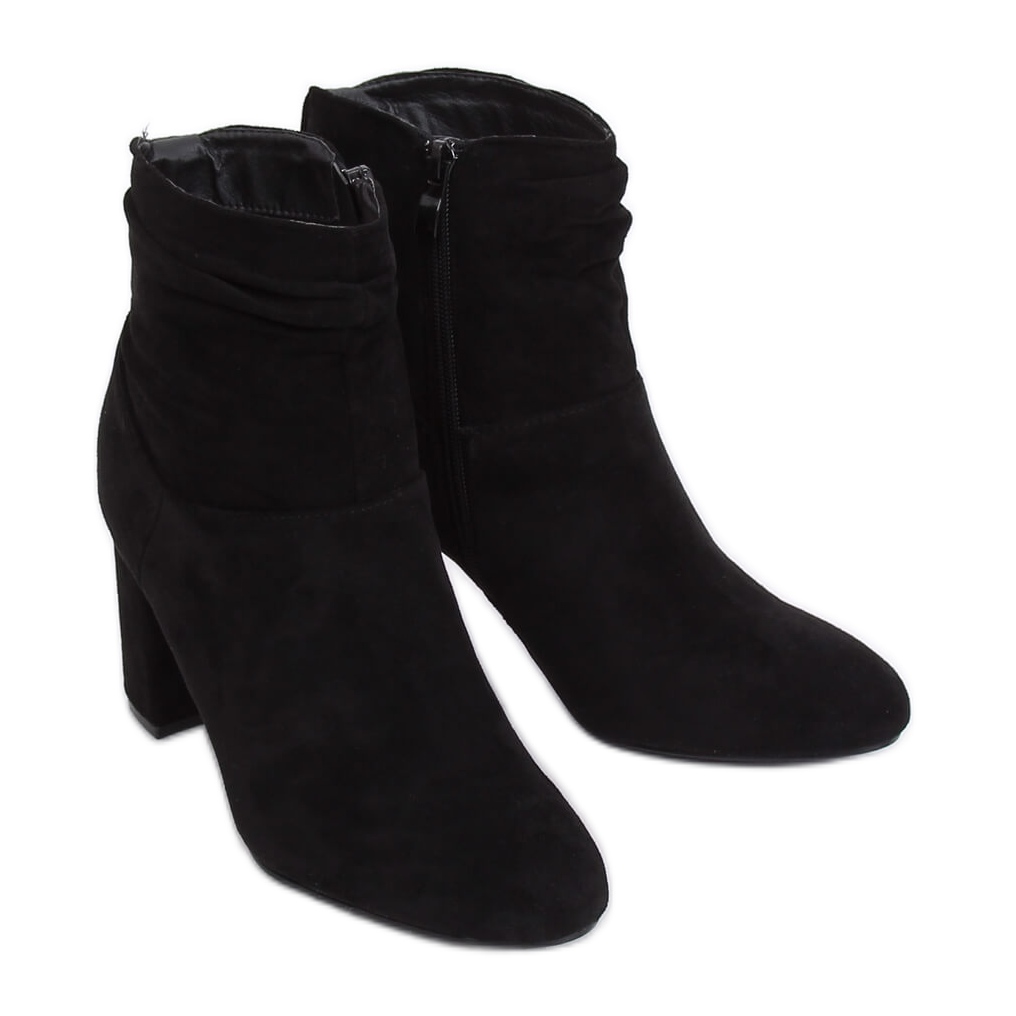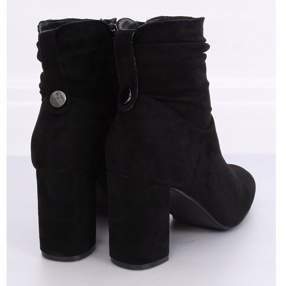 Classic black 9018-7 Black high heel ankle boots are the perfect choice for women who value elegance combined with comfort. These fashionably pleated ankle boots stand out not only for their stylish look, but also for their practical solutions. The stable 8.5 cm block heel provides excellent balance, making them ideal for long hours of wear.