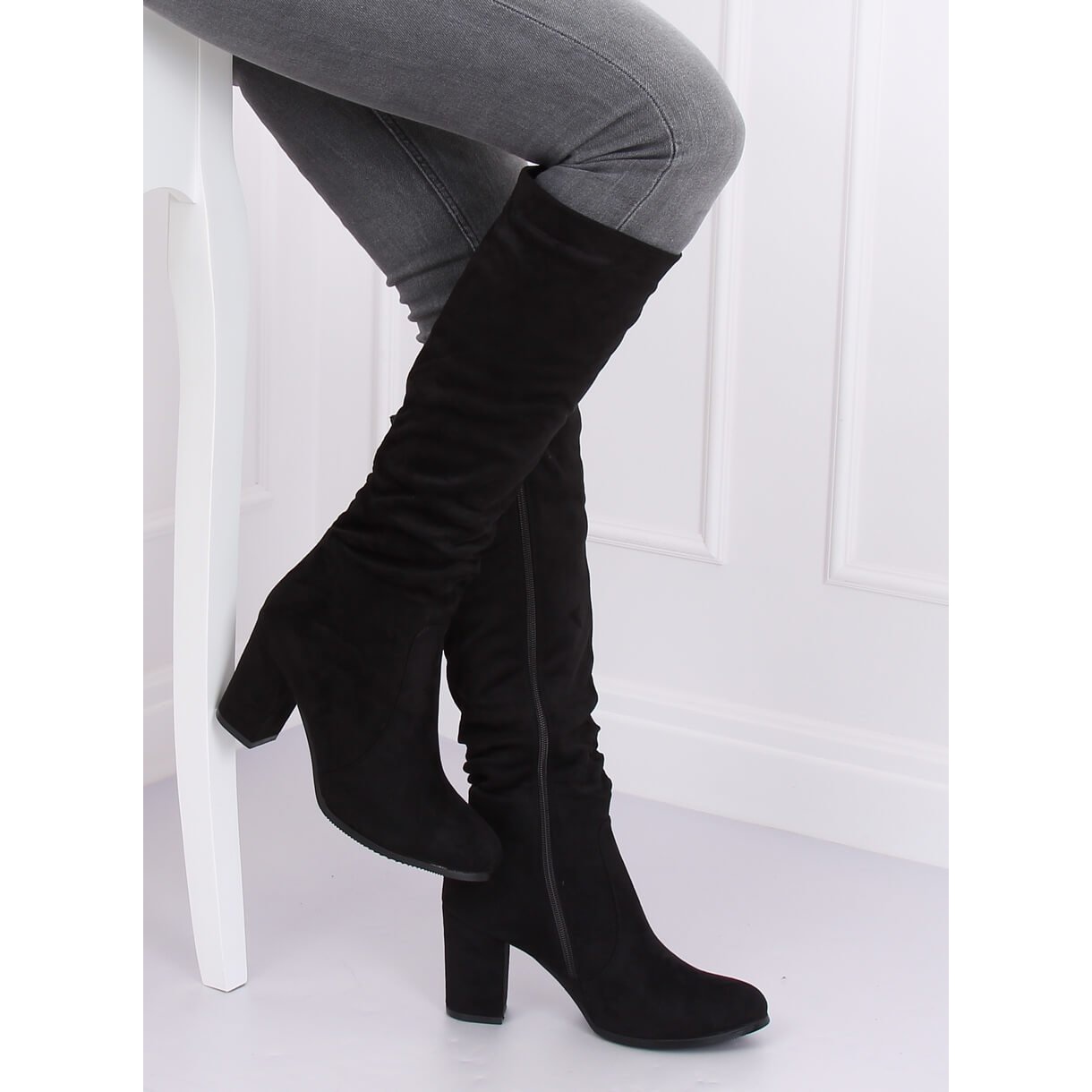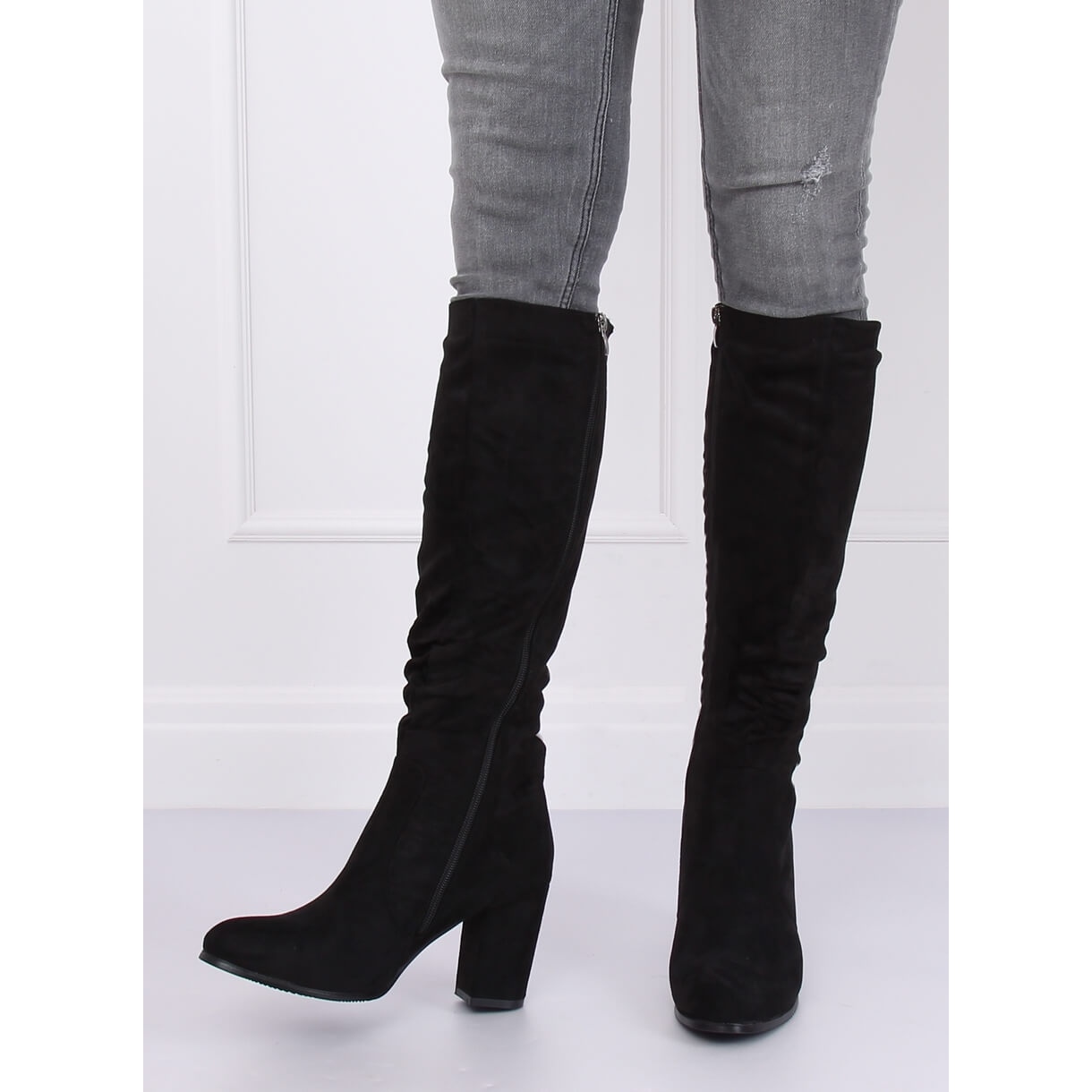 Discover elegance and comfort with the classic black 750-05 Black high heel boots. These women's suede boots feature a fashionably ruffled upper that adds an original character. The stable 8.5 cm high heel provides a great balance between style and comfort, making them ideal for both everyday wear and special occasions.