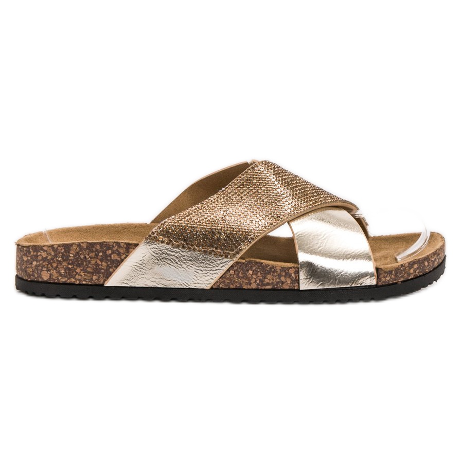 Classic Gold Slippers SHELOVET are a great choice for people who value style and comfort every day. These elegant women's slippers stand out with their fashionable gold color, which attracts attention and perfectly matches various styles. Thanks to the crossed straps, the slippers hold the foot perfectly, providing comfort with every step.