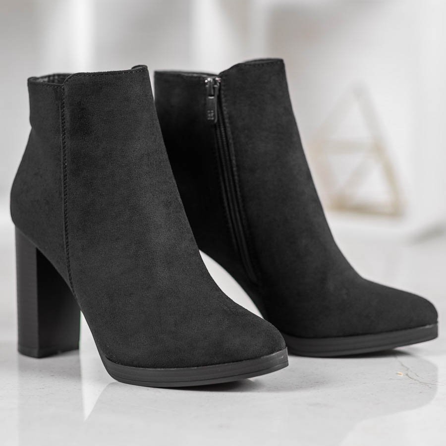 Discover elegance and comfort with the classic Ideal Shoes high-heeled ankle boots in a deep black color. These versatile shoes will fit perfectly into many different styles, giving each of them a unique character.