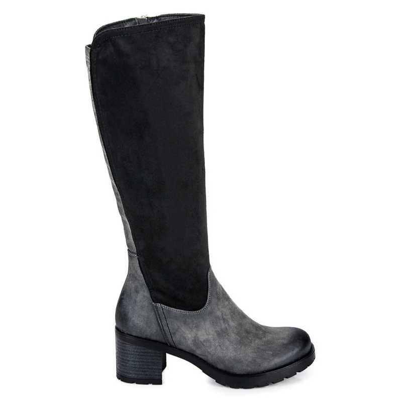 The model is available in a universal black color, which makes it a great match for many styles - from everyday to more elegant occasions. The knee-high upper adds chic, and the round toe guarantees comfort of wearing all day long. The 6.5 cm high post-shaped heel makes the boots stable and easy to match with different outfits.