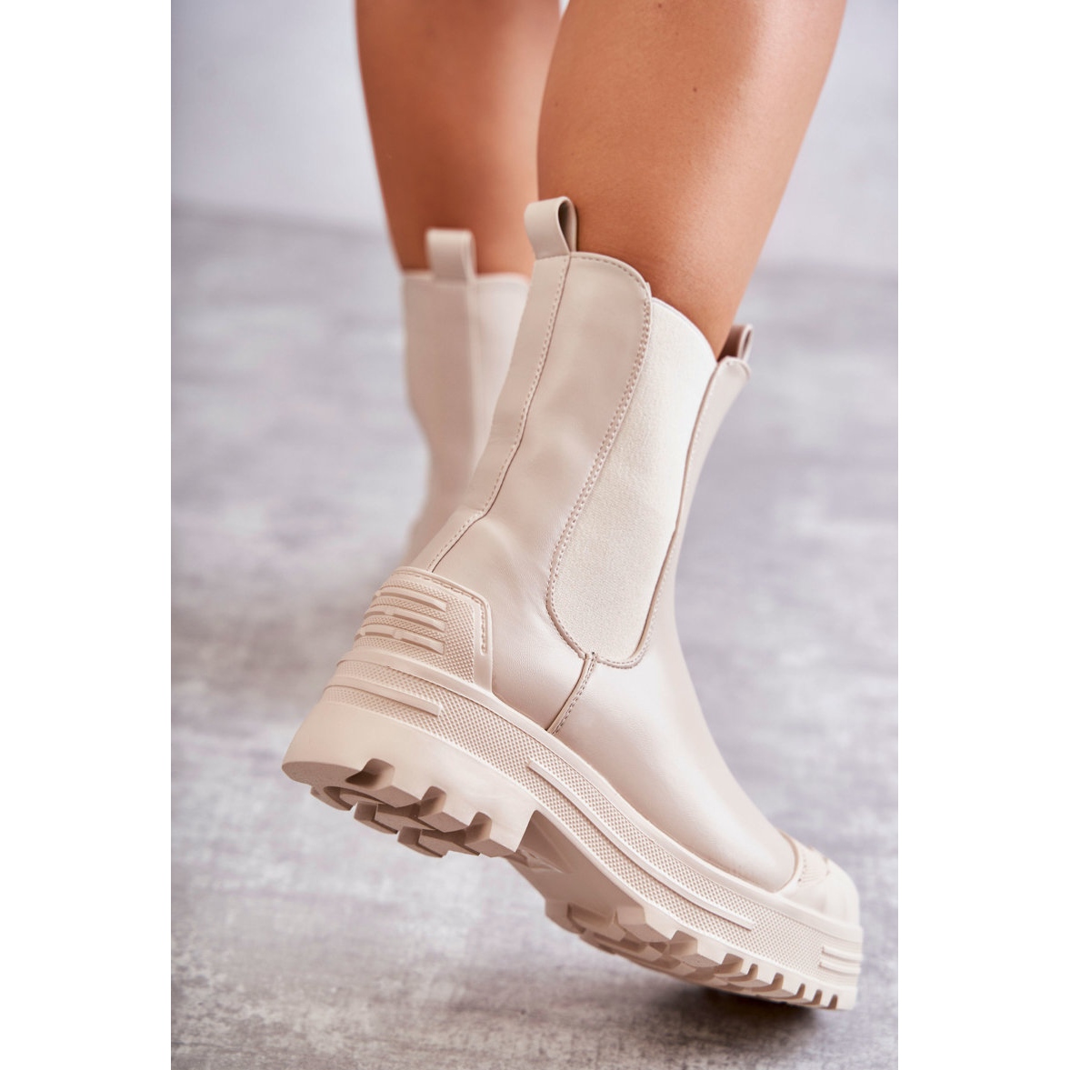 The boots are set on a 3 cm platform and flat heel, making them a great choice for long days in the city. The fabric insole makes everyday wear comfortable, and the loops at the top of the upper make it easy to quickly put on the shoes.