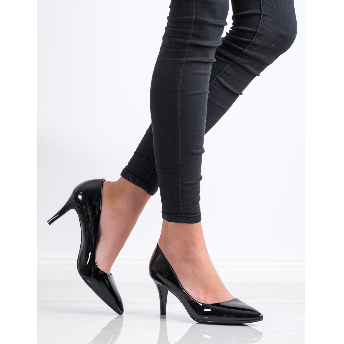 We present beautiful, classic patent pumps from the manufacturer Goodin, which are a perfect choice for women who value elegance and comfort. These black stilettos are distinguished by their simple design, which makes them ideal for both evening creations and casual styles with jeans.