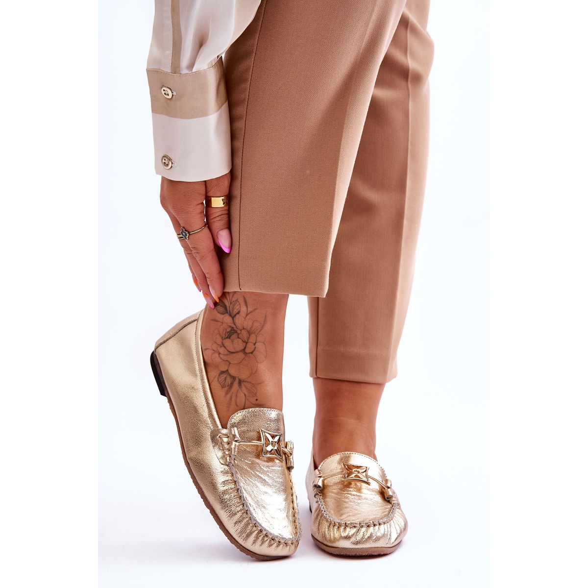 Laura Messi Classic Leather Loafers With Decoration Laura Messi 2459 Gold golden