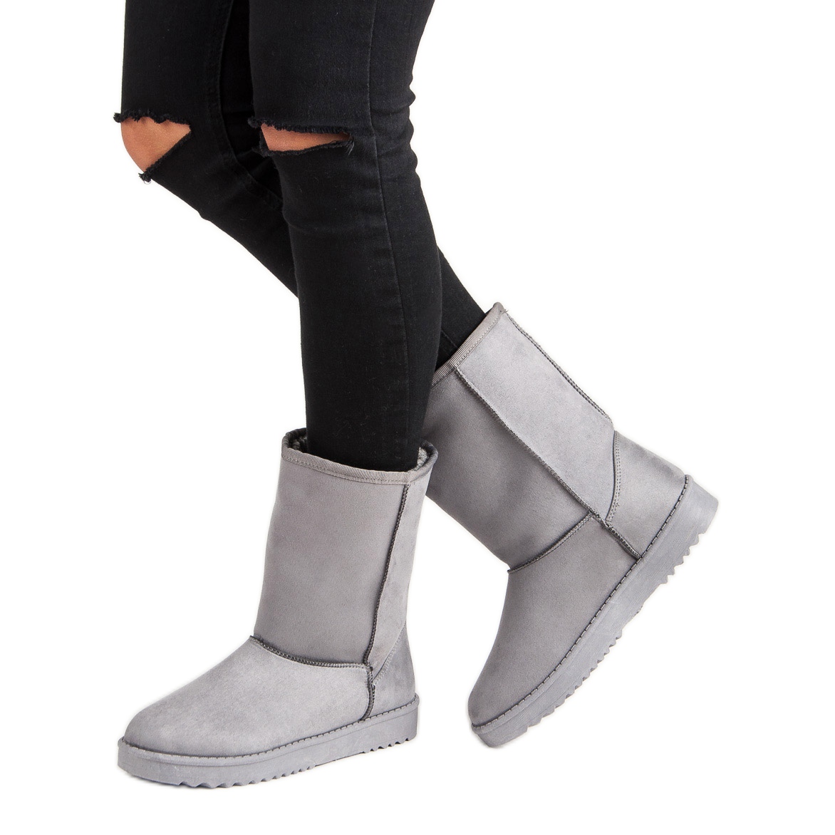 Here is the perfect choice for cold days - classic mukluks in an elegant, grey shade, which will be a perfect complement to any winter styling. Made of ecological suede, these women's shoes combine fashionable design with functionality. Their slip-on style and upper reaching above the ankles provide not only comfort, but also great protection against the cold.