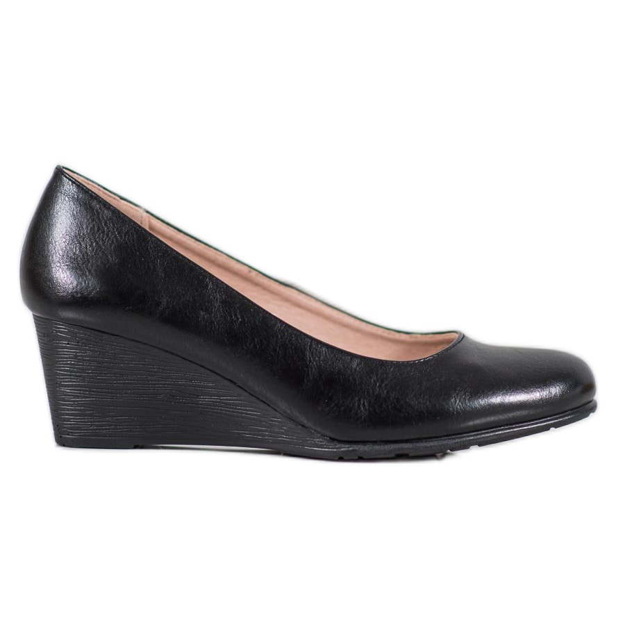 Classic VINCEZA wedge pumps in black are a great choice for women who value elegance and everyday comfort. These simple, yet incredibly stylish shoes are an investment for many years. Made of ecological leather, they are characterized by increased durability, which makes them resistant to quick damage.