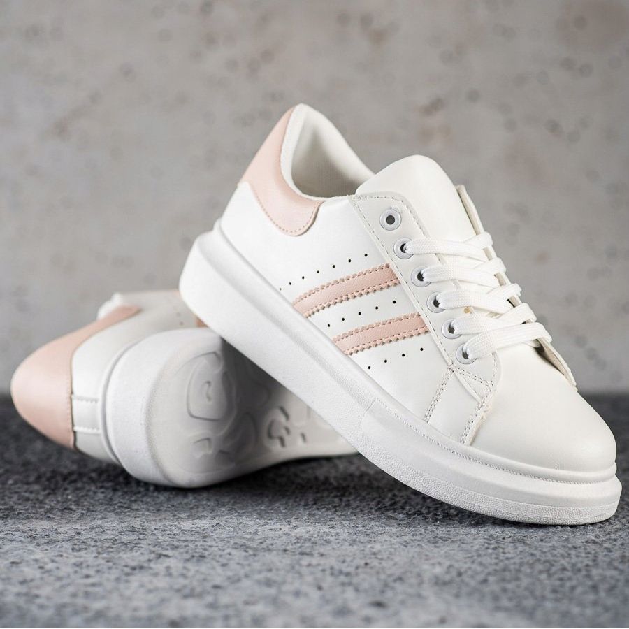 SHELOVET Classic Sneakers With Straps in White are the perfect choice for women who value style and comfort in everyday use. These sports shoes are perfect for both everyday and casual styling. Made of high-quality imitation leather, they provide an aesthetic appearance and are easy to care for.