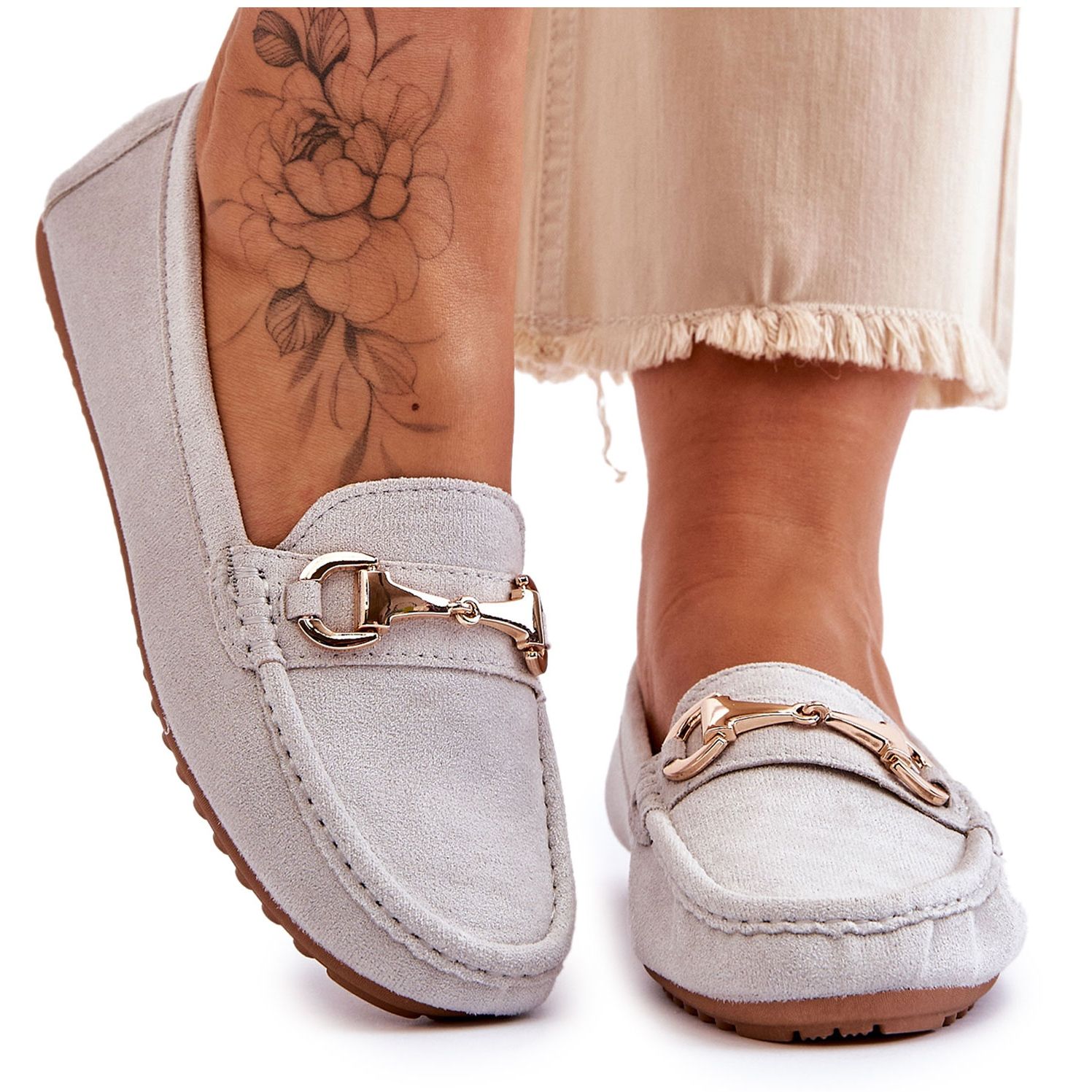 Here are elegant and comfortable women's moccasins FC3 Classic Suede Moccasins with Decoration in gray, which will be a perfect complement to any styling! Made of high-quality eco-suede, these moccasins will provide comfort of wearing, thanks to the pleasant to the touch material and the insole made of eco-leather.