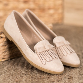 We present classic suede brown lords by Coura, which will add elegance to any styling. These women's ballerinas, made of light brown, ecological suede leather, combine style and comfort. The closed, rounded toes with a decorative bow and a fringe insert make them ideal for various occasions.