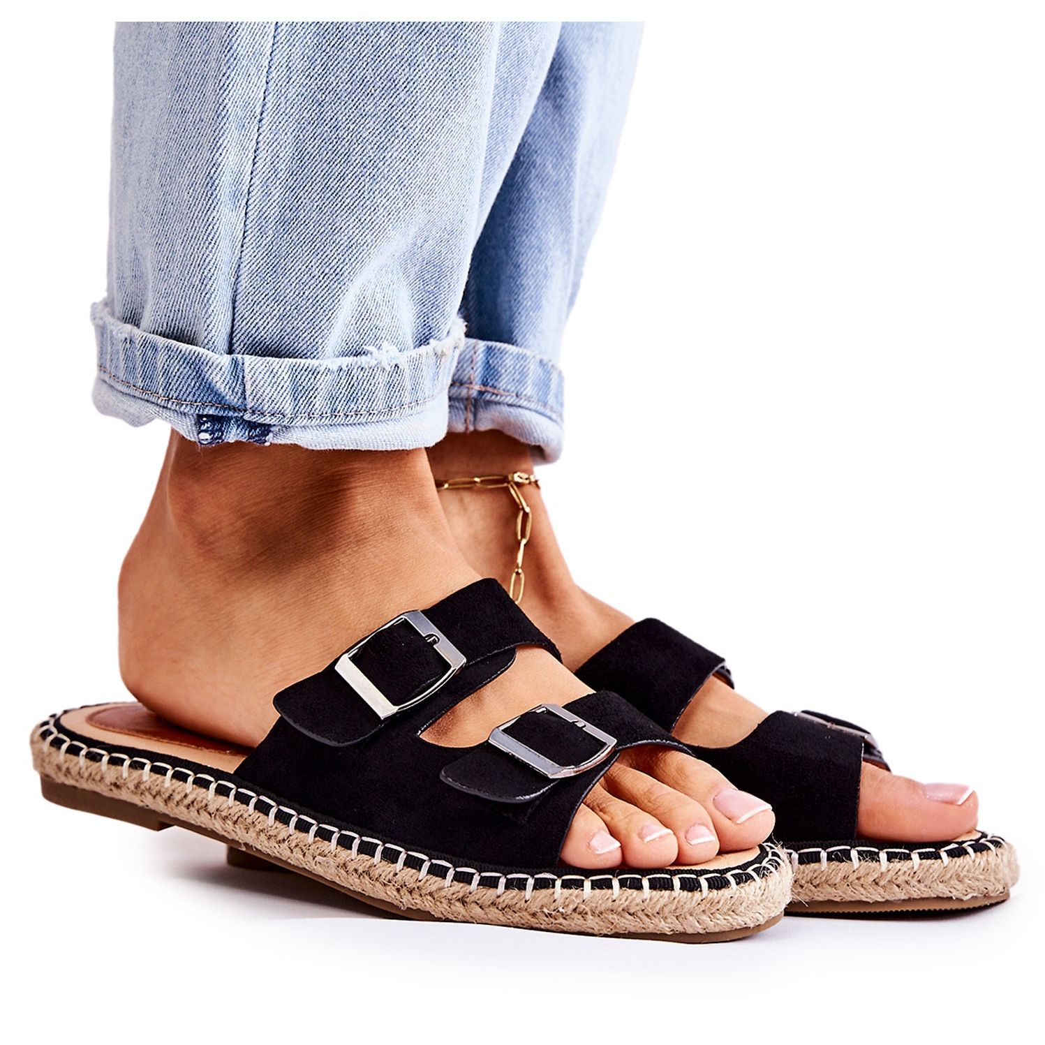 The flip-flops are set on a flat 2.5 cm heel and have a non-slip sole, which ensures comfort even during longer walks. Two adjustable straps with a buckle allow for a perfect fit of the footwear to the foot, which increases the comfort of use. Additionally, there is a decorative jute braid around the sole, which gives the flip-flops a fashionable and stylish look.